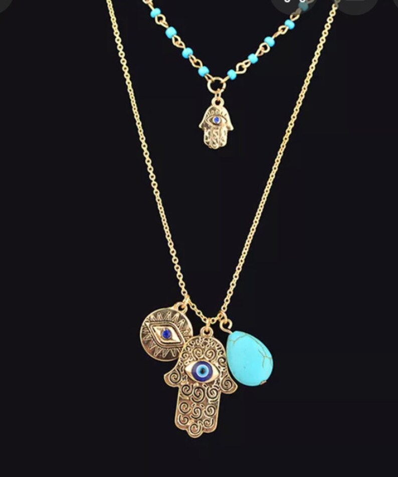 14K Gold And Diamond Evil Eye Necklace Set With Turquoise And Mother Theresa Mink Designs 18k gold-plated stainless steel Two-year quality and plating gu Stick to a simple single pendant look or make a statement with layered chains. Evil eye symbolism with a sophisticated twist, this stunning pendant necklace makes for an iconic choice this season